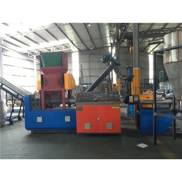 This recycle plastic granules making machine is composed of Automatic conveyor (VVVF), automatic feeding machine, Double stage screw extruder (include the main extruder and the vice extruder), cooling trough, pelletizer(cutting machine), storage silo, etc.